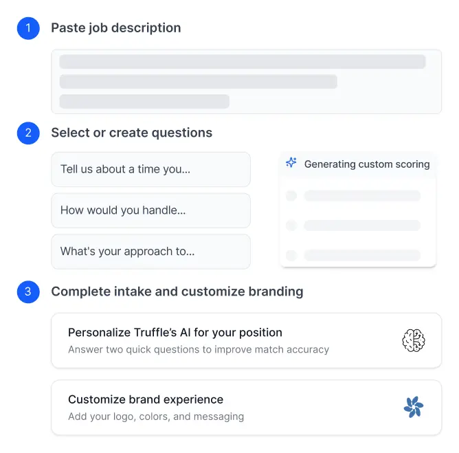 Paste your job description. Truffle builds the interview. No sales calls, no training, no IT tickets. Just start.