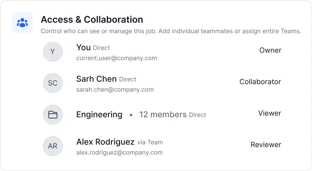 Set organization-wide roles or job-level access. Keep executive searches confidential or open feedback to everyone. Your hiring process, your rules.