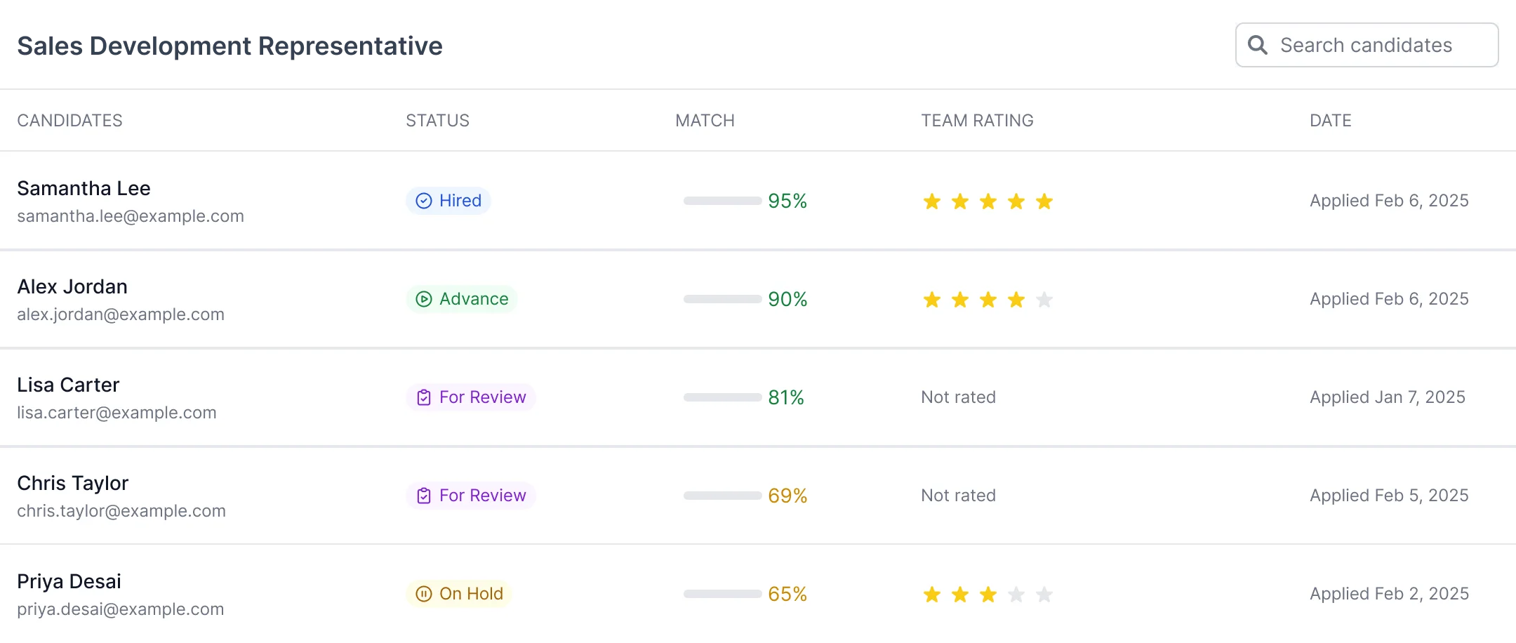 The AI actually works—it's scary how well it spots the candidates who interview well in person. My favorite part? Managers stopped asking 'when will you have candidates for me?' because I'm delivering quality shortlists faster than they can interview them. Game changer.