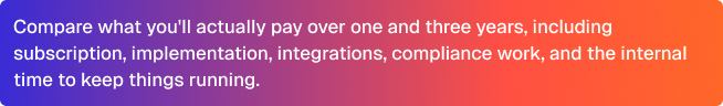 Don't compare sticker prices. Compare what you'll actually pay over one and three years, including subscription, implementation, integrations, compliance work, and the internal time to keep things running.