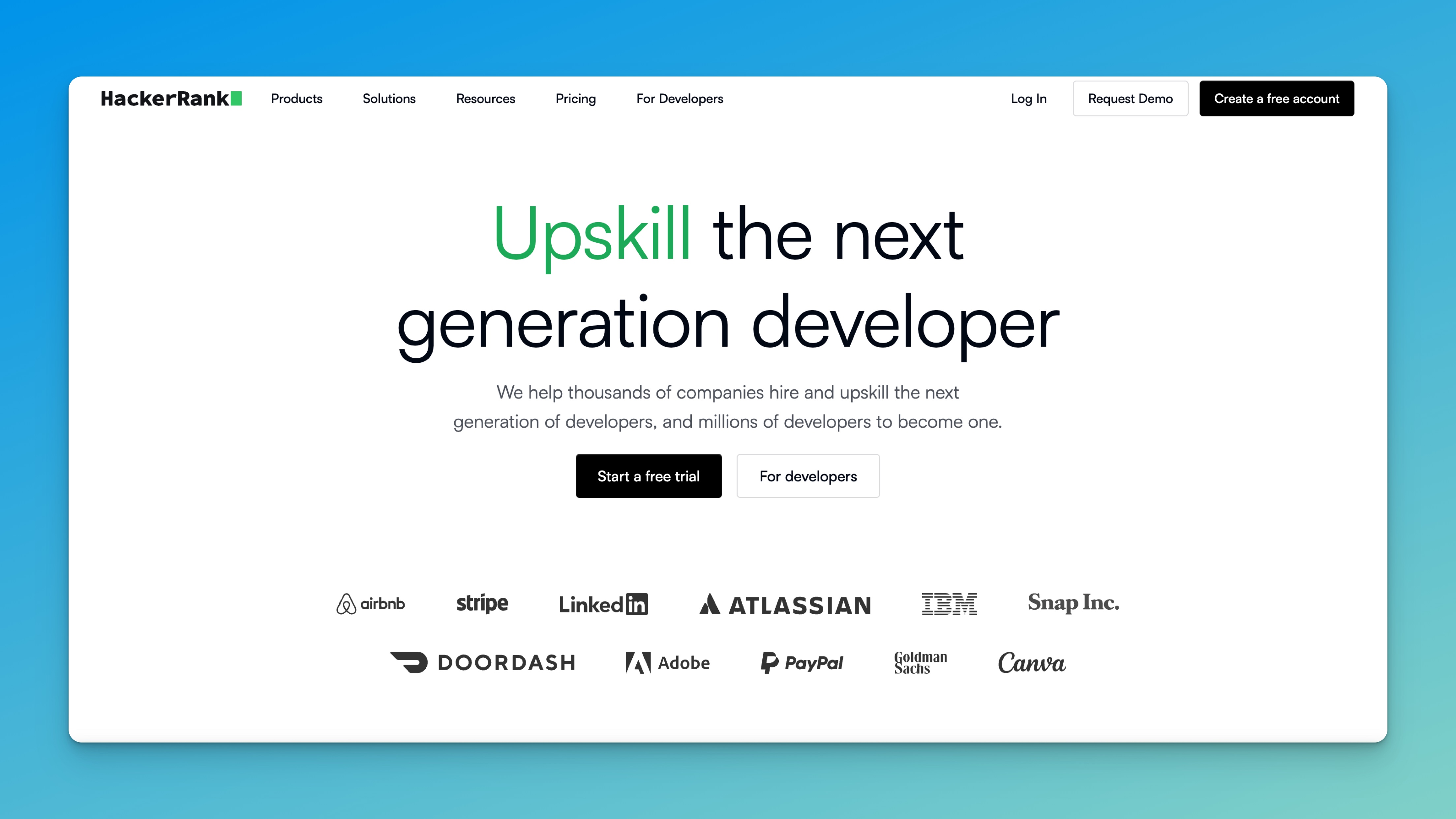 HackerRank is a developer skills platform that focuses on technical assessment. It offers coding challenges in over 35 programming languages and includes real-time interview features.