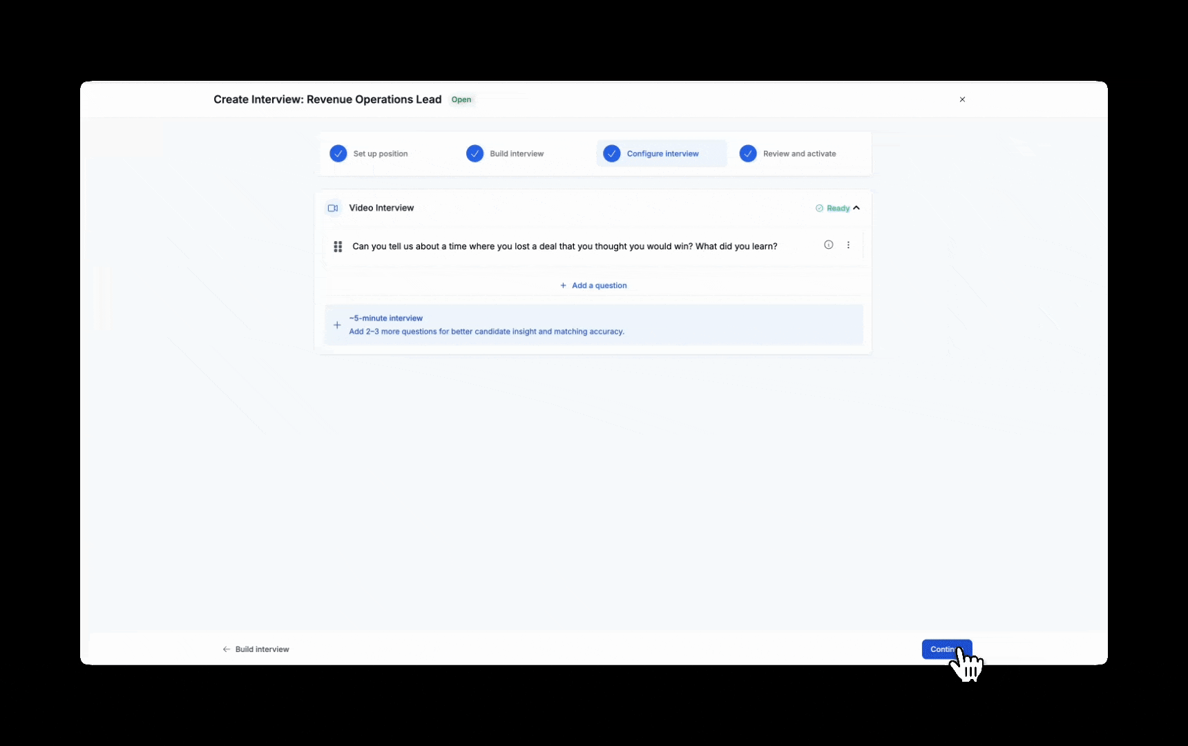 - Question-level evaluation attaches criteria to every interview question. Each one has a "Why we ask this" and "What we look for" explanation. You and your hiring manager agree on what matters before a single candidate records a response.