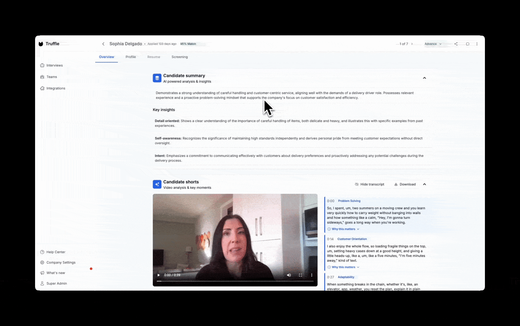 - AI summaries give you a written overview before you watch anything. Strengths, concerns, how they compared to your requirements.
