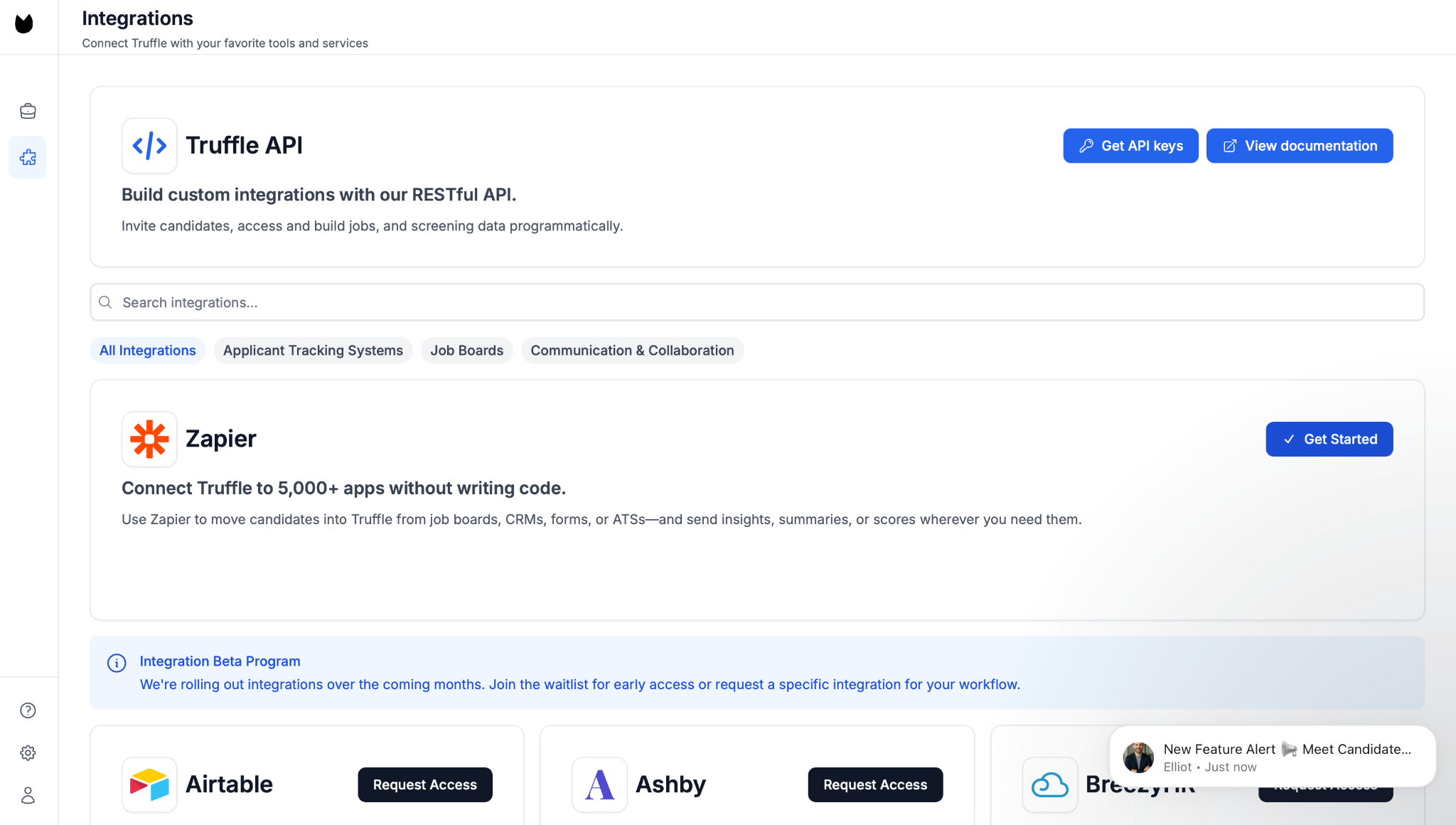 With Truffle’s Zapier integration, you can automatically invite candidates the moment they hit a certain stage in your hiring flow.