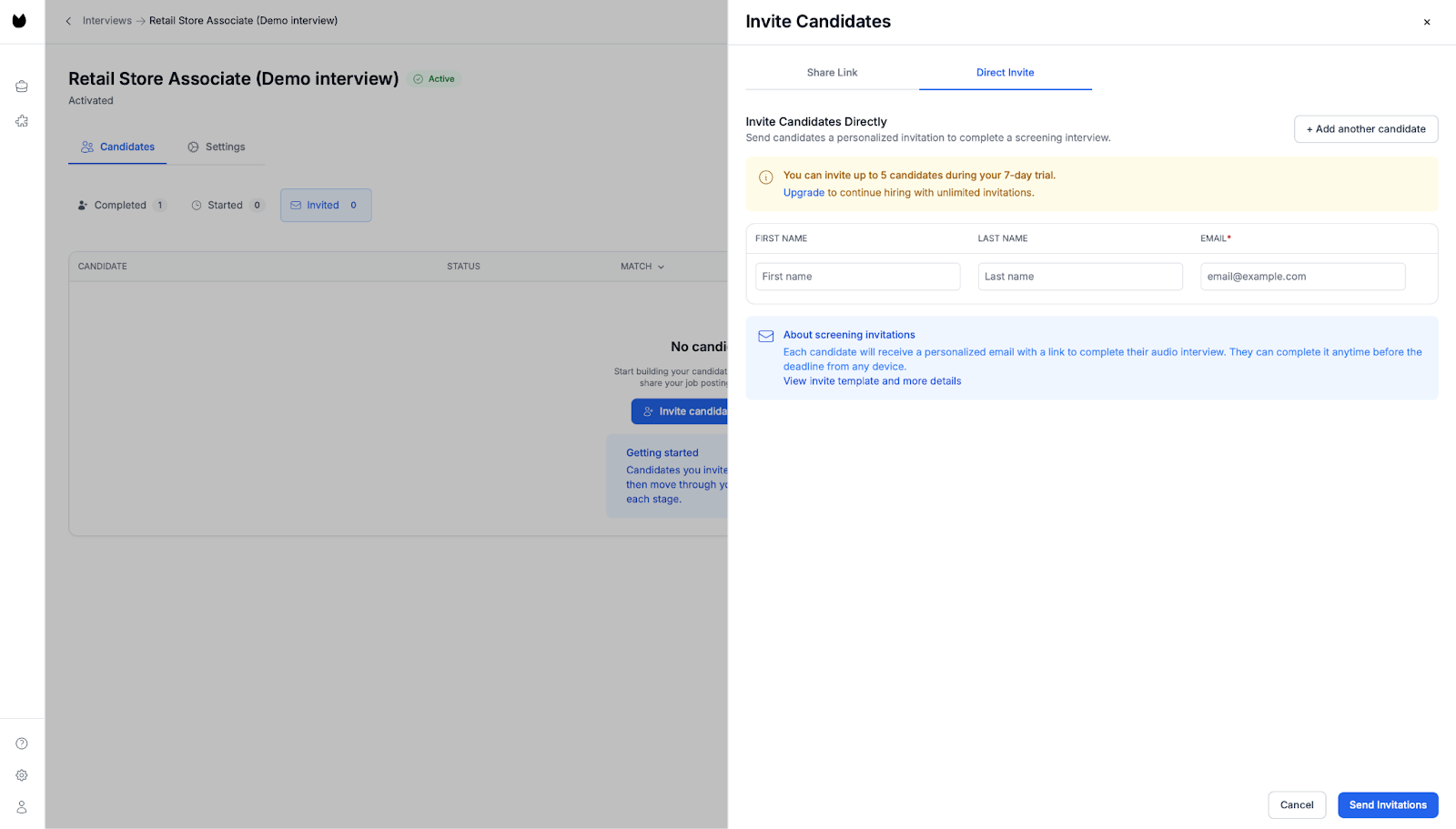 3. Invite candidates directly from your ATS
