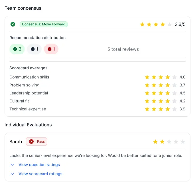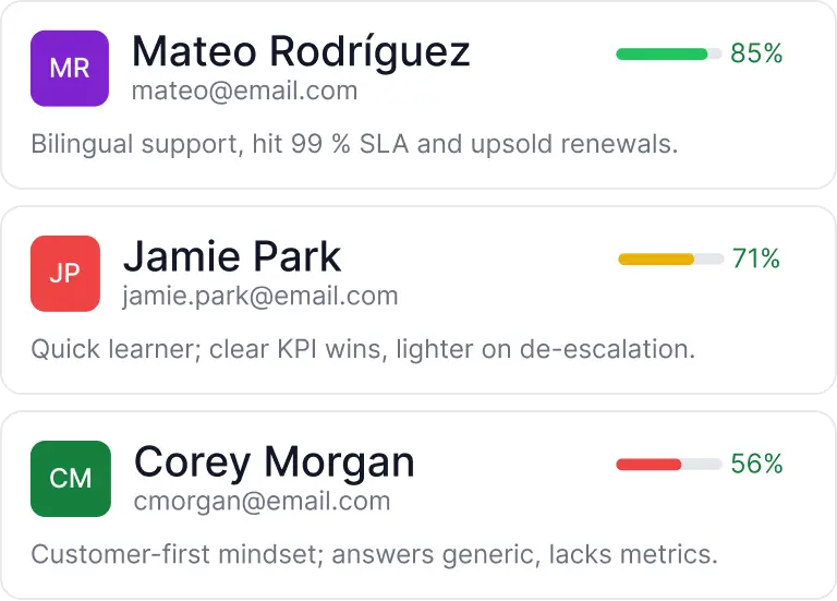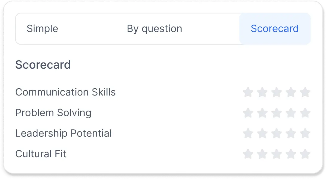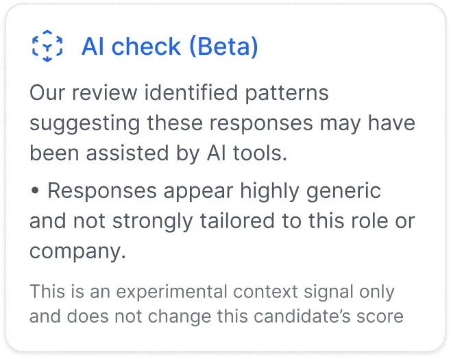 Generate custom questions with assisted matching rubrics, so every reviewer evaluates candidates against the same criteria.
